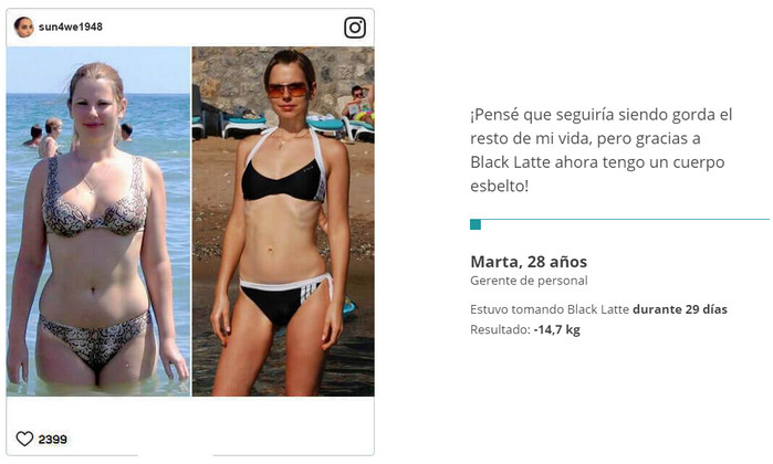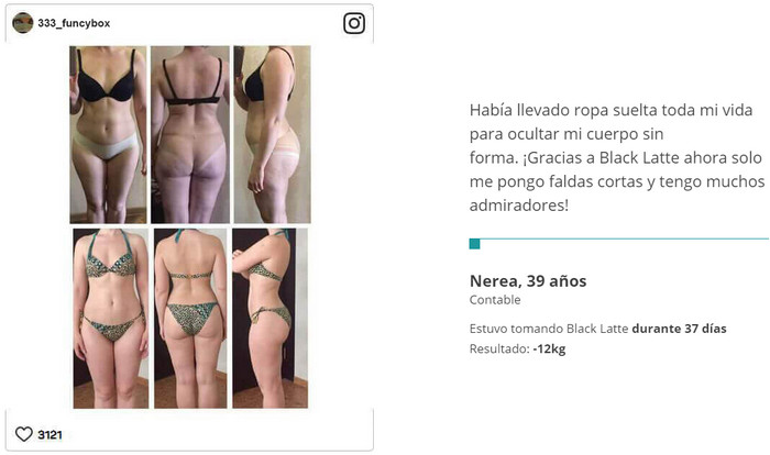 Aquellos que ya han logrado perder peso con una bebida de café Black Latte comparten testimonios y escriben sobre sus resultados e impresiones sobre diversos recursos. La mayoría de las opiniones y comentarios sobre Black Latte son positivas. Esto no es sorprendente, porque el remedio realmente ayuda a perder peso y a ser más hermoso, a tensar el cuerpo sin dañar la salud.
