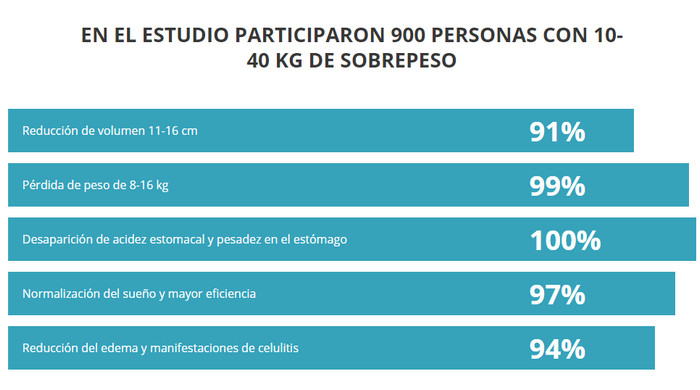 - El 100% de los que han perdido peso perdieron la sensación de pesadez en el estómago, acidez estomacal y otros problemas con el tracto digestivo.