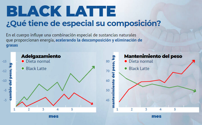 Uno de los principales obstáculos en la lucha contra el exceso de peso para aquellos que quieren perder peso es la necesidad de abandonar sus platos favoritos, dulces y comida rápida. Esto provoca pensamientos sombríos, así como un tormento de conciencia, si se produce un colapso debido a la comida. Para hacer frente a los ataques de hambre, evite las redadas nocturnas en el refrigerador y obtenga excelentes resultados Black Latte ayudará a perder peso. ¡Es natural, sabroso y lo más importante, efectivo! El complejo de componentes útiles limpia el cuerpo de todo lo innecesario: toxinas, toxinas, líquidos y ordena los procesos metabólicos, lo que desencadena una pérdida de peso intensa.